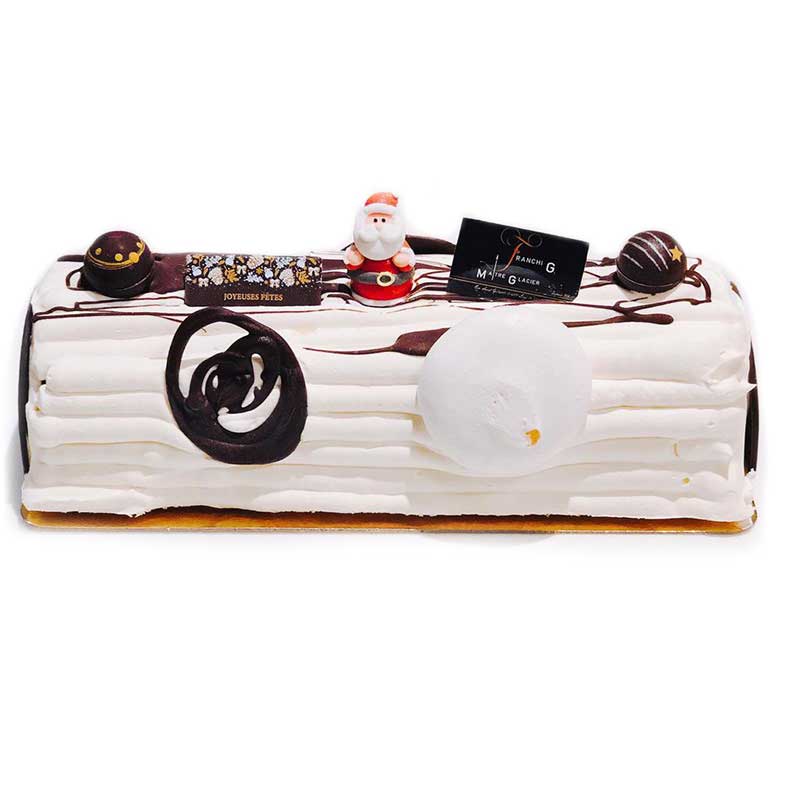 Bûche à la glace vanille de Madagascar, glace au chocolat belge et crème fraîche.